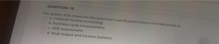 The System That Measures The Economy's Overall Performance Is Formally Known As