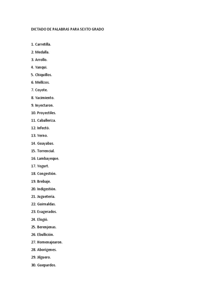 Dictado De Palabras Para Quinto Grado