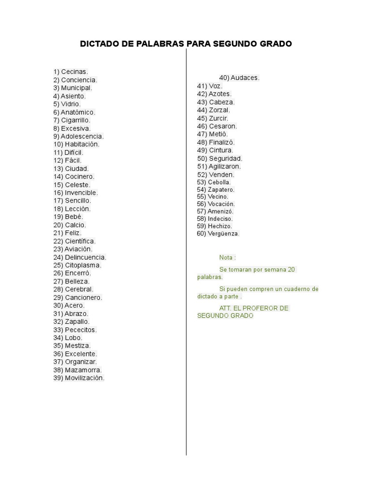 Dictado de palabras para quinto grado pdf Continue. Su hijo a deberá estudiarlas ya que el dictado se realizará el jueves 14 de noviembre en la hora de la clase de Español. A continuación las palabras del Dictado de Ortografía.